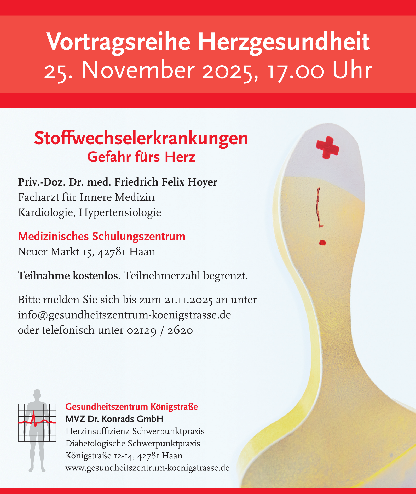 Bitte melden Sie sich bis zum 21.11.2025 an per E-Mail unter info@gesundheitszentrum-koenigstrasse.de oder telefonisch unter 02129 / 2620.